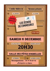 Le Comité des Fêtes propose une pièce de théâtre samedi 6 décembre à 20 h 30 à la salle des…